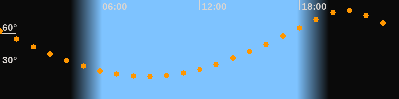 | Höchster Stand (Kulmination) | 20:47 Uhr (h = 80,8°) |