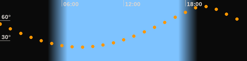 | Höchster Stand (Kulmination) | 19:48 Uhr (h = 80,8°) |