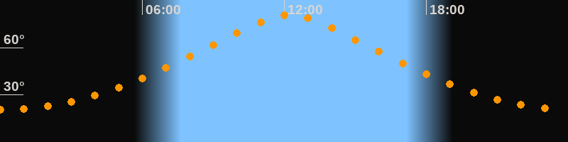 | Höchster Stand (Kulmination) | 12:12 Uhr (h = 80,8°) |