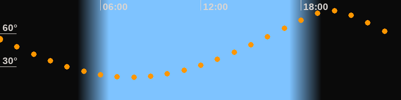 | Höchster Stand (Kulmination) | 19:50 Uhr (h = 80,8°) |