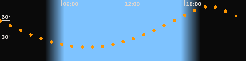| Höchster Stand (Kulmination) | 20:26 Uhr (h = 80,8°) |