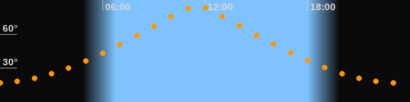 | Höchster Stand (Kulmination) | 11:31 Uhr (h = 84,6°) |