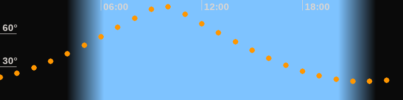 | Höchster Stand (Kulmination) | 09:42 Uhr (h = 84,6°) |