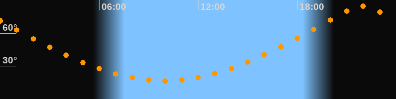 | Höchster Stand (Kulmination) | 21:56 Uhr (h = 84,6°) |
