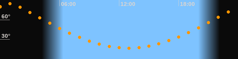 | Höchster Stand (Kulmination) | 00:54 Uhr (h = 84,6°) |