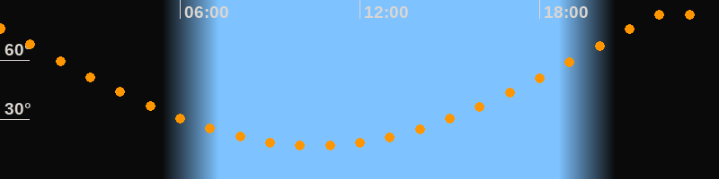 | Höchster Stand (Kulmination) | 22:29 Uhr (h = 84,6°) |