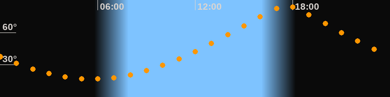 | Höchster Stand (Kulmination) | 17:37 Uhr (h = 84,6°) |