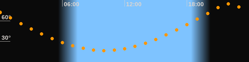 | Höchster Stand (Kulmination) | 22:04 Uhr (h = 84,6°) |