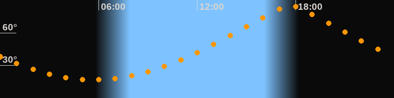 | Höchster Stand (Kulmination) | 17:41 Uhr (h = 84,6°) |