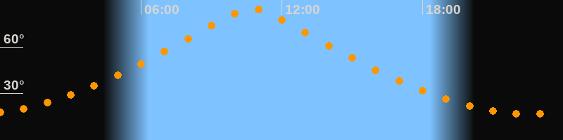 | Höchster Stand (Kulmination) | 10:44 Uhr (h = 84,6°) |