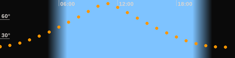 | Höchster Stand (Kulmination) | 10:53 Uhr (h = 84,6°) |