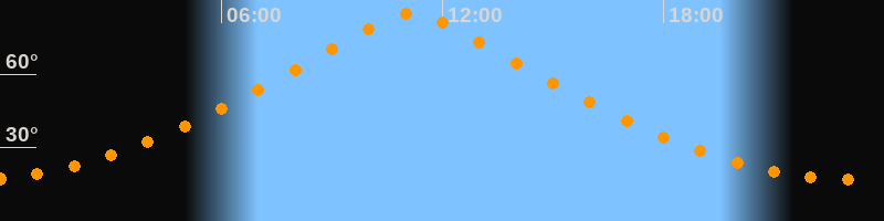 | Höchster Stand (Kulmination) | 11:10 Uhr (h = 84,6°) |