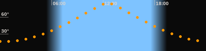 | Höchster Stand (Kulmination) | 12:32 Uhr (h = 84,6°) |