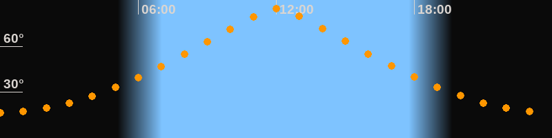 | Höchster Stand (Kulmination) | 12:01 Uhr (h = 84,6°) |