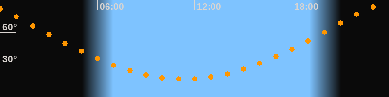 | Höchster Stand (Kulmination) | 23:19 Uhr (h = 84,6°) |