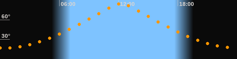 | Höchster Stand (Kulmination) | 12:14 Uhr (h = 84,6°) |