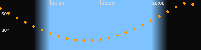 | Höchster Stand (Kulmination) | 22:17 Uhr (h = 84,6°) |