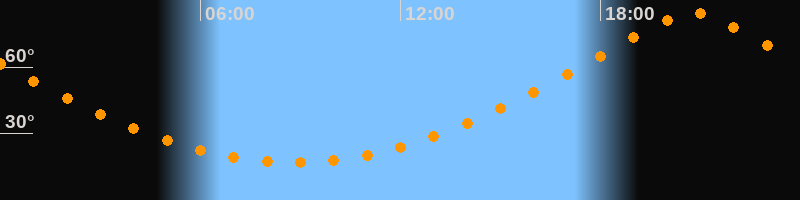 | Höchster Stand (Kulmination) | 20:47 Uhr (h = 84,6°) |