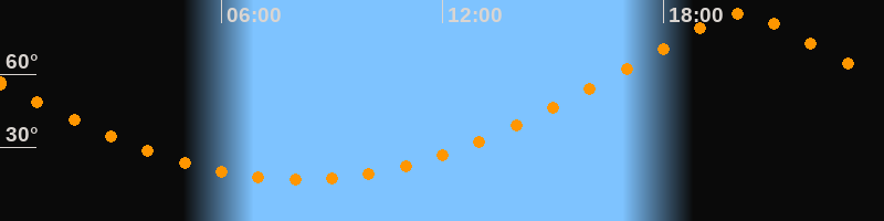 | Höchster Stand (Kulmination) | 20:07 Uhr (h = 84,6°) |