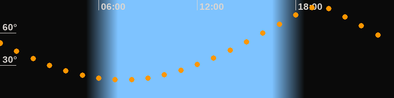 | Höchster Stand (Kulmination) | 19:24 Uhr (h = 84,6°) |