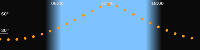 | Höchster Stand (Kulmination) | 13:06 Uhr (h = 82,6°) |