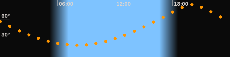 | Höchster Stand (Kulmination) | 20:01 Uhr (h = 82,6°) |