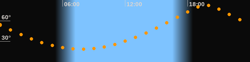 | Höchster Stand (Kulmination) | 19:46 Uhr (h = 82,6°) |