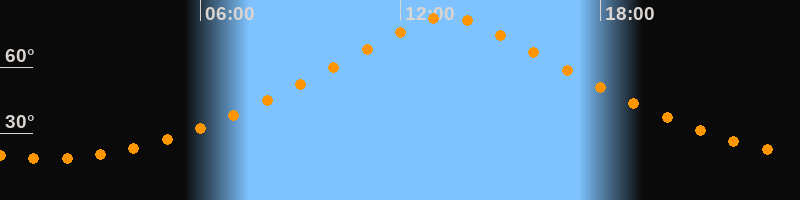 | Höchster Stand (Kulmination) | 13:25 Uhr (h = 82,6°) |