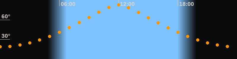 | Höchster Stand (Kulmination) | 11:58 Uhr (h = 82,6°) |