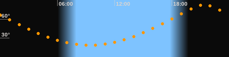 | Höchster Stand (Kulmination) | 21:22 Uhr (h = 82,6°) |