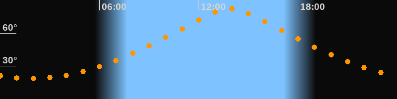 | Höchster Stand (Kulmination) | 13:54 Uhr (h = 82,6°) |