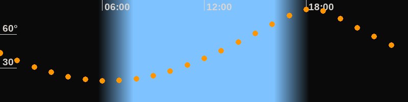 | Höchster Stand (Kulmination) | 18:19 Uhr (h = 82,6°) |
