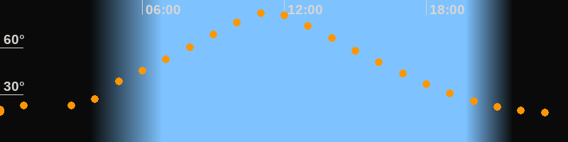 | Höchster Stand (Kulmination) | 11:21 Uhr (h = 82,6°) |