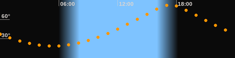 | Höchster Stand (Kulmination) | 17:23 Uhr (h = 82,6°) |