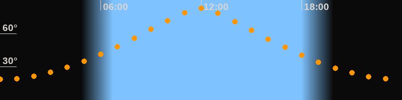 | Höchster Stand (Kulmination) | 11:57 Uhr (h = 82,6°) |