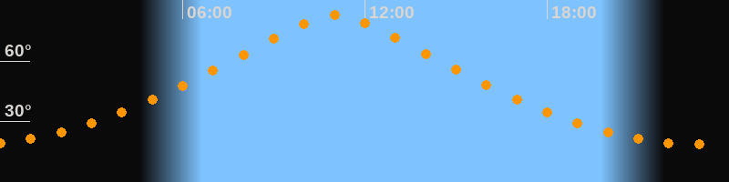 | Höchster Stand (Kulmination) | 11:00 Uhr (h = 82,6°) |