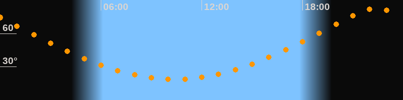 | Höchster Stand (Kulmination) | 22:22 Uhr (h = 82,6°) |