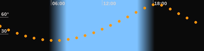 | Höchster Stand (Kulmination) | 18:22 Uhr (h = 82,6°) |