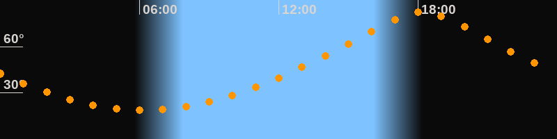 | Höchster Stand (Kulmination) | 18:11 Uhr (h = 82,6°) |