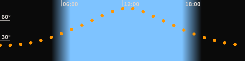 | Höchster Stand (Kulmination) | 12:27 Uhr (h = 78,1°) |