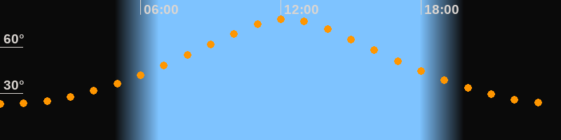 | Höchster Stand (Kulmination) | 12:13 Uhr (h = 78,1°) |