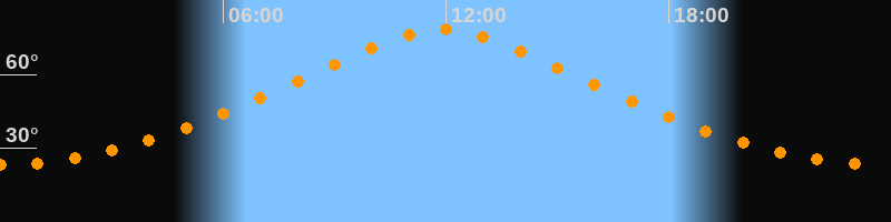 | Höchster Stand (Kulmination) | 11:53 Uhr (h = 78,1°) |