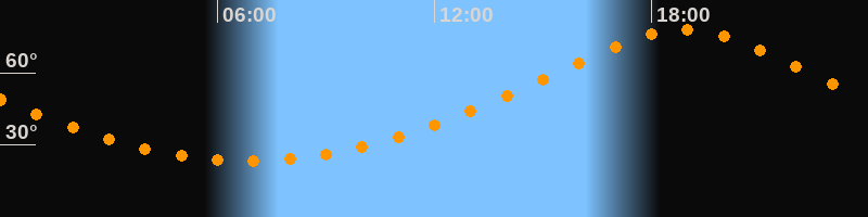 | Höchster Stand (Kulmination) | 18:52 Uhr (h = 78,1°) |