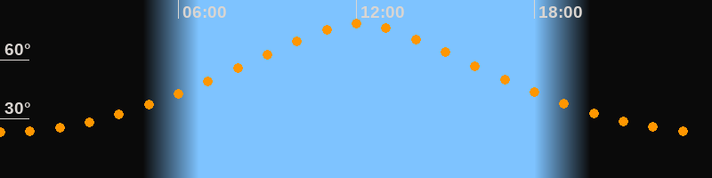 | Höchster Stand (Kulmination) | 12:04 Uhr (h = 78,1°) |