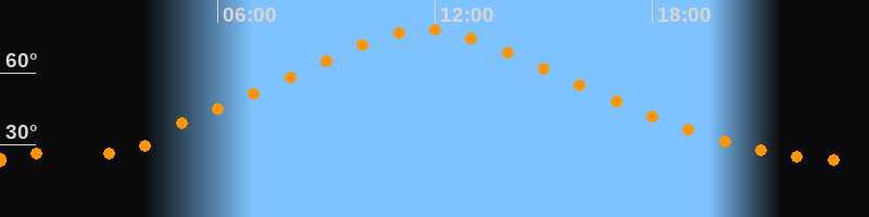 | Höchster Stand (Kulmination) | 11:45 Uhr (h = 78,1°) |