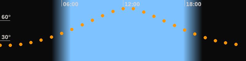 | Höchster Stand (Kulmination) | 12:25 Uhr (h = 78,1°) |