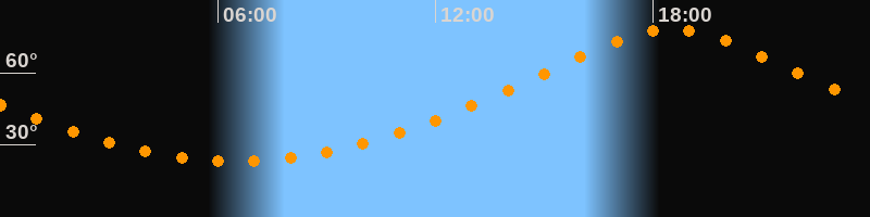 Höchster Stand (Kulmination)18:31 Uhr (h = 78,1°)