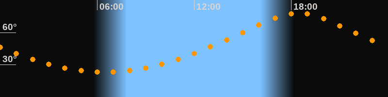 | Höchster Stand (Kulmination) | 18:27 Uhr (h = 78,1°) |