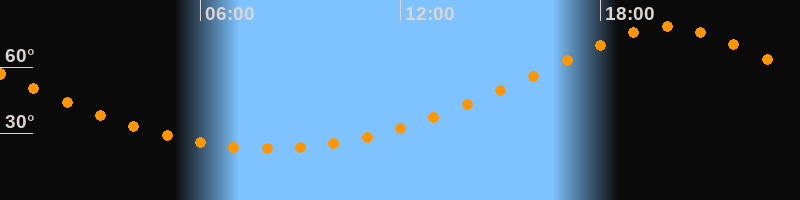 Höchster Stand (Kulmination)20:02 Uhr (h = 78,1°)
