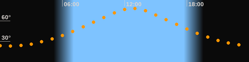 | Höchster Stand (Kulmination) | 12:46 Uhr (h = 78,1°) |